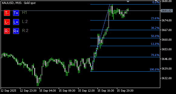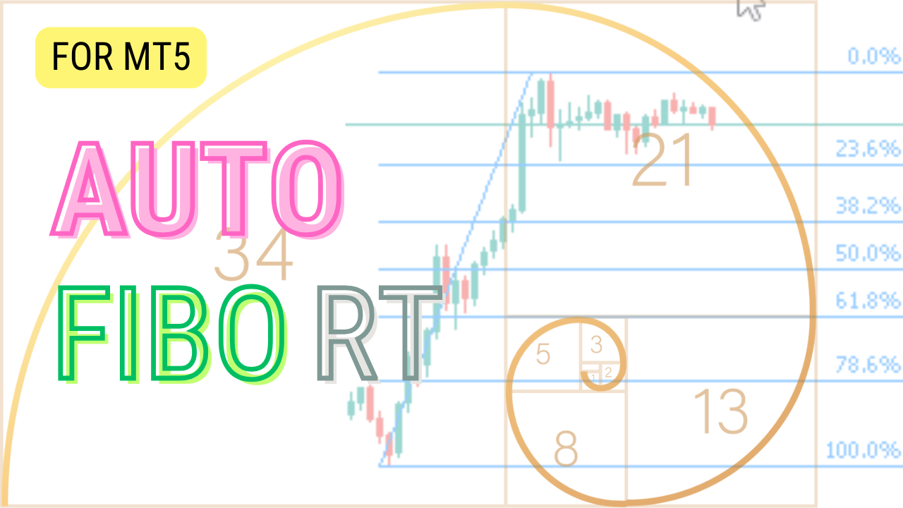 - 直近の高値安値をベースに自動でフィボナッチリトレースメントラインを描画するインジケーターです。