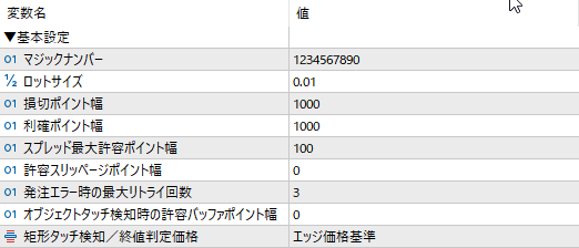 タッチオーダー指定時は、シンプルにラインタッチ検知で発注します。検知感度をコントロールするためのバッファも設定できます。